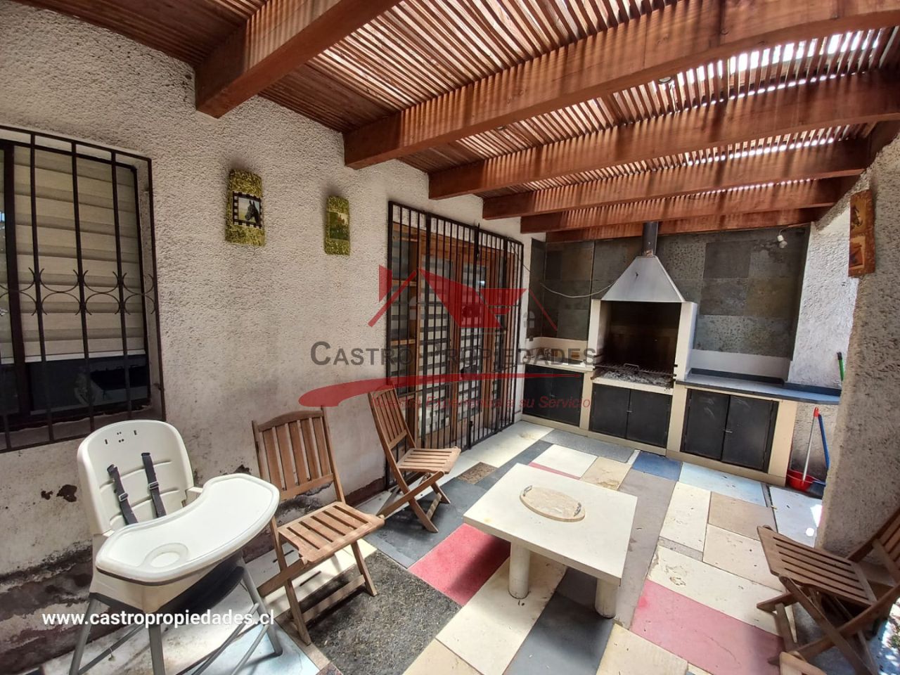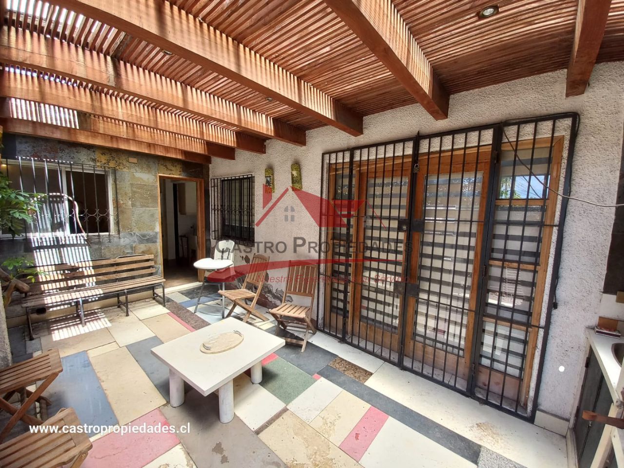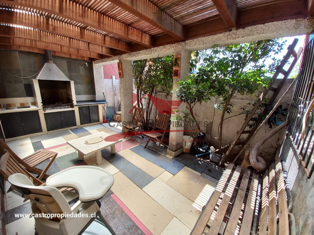 – Patio Trasero con Techo y Vigas a la Vista
