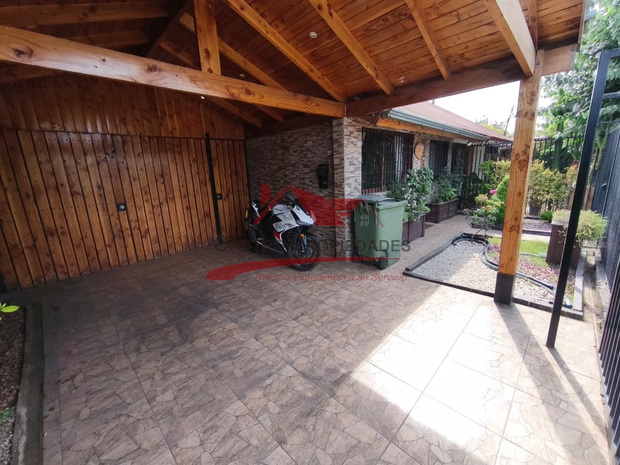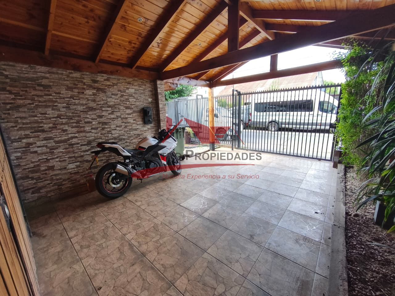 – Estacionamiento para Tres Vehiculos con Cobertizo de Madera con Vigas a la Vista