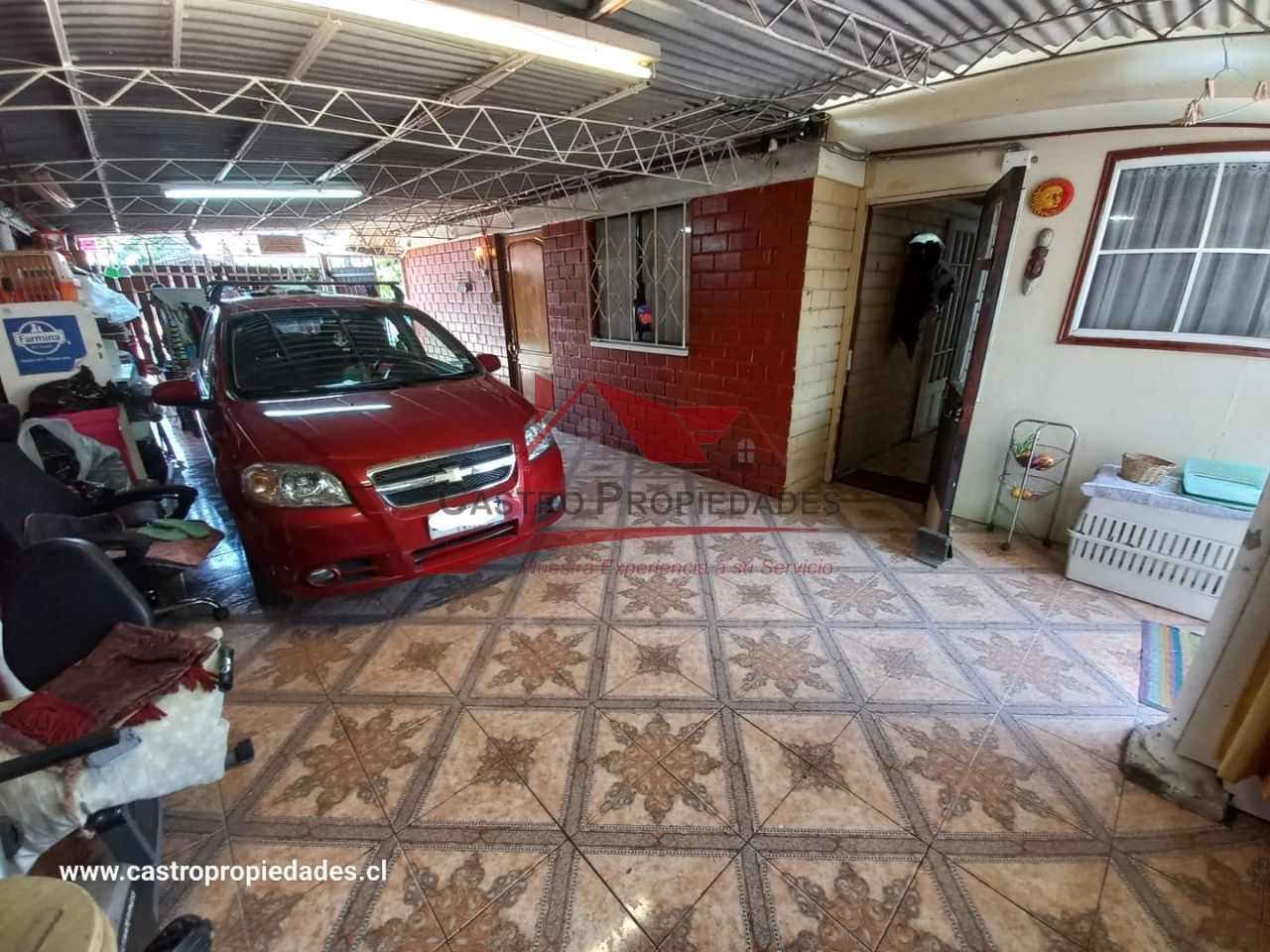 – Estacionamiento para Tres Vehiculos con Cobertizo de Fierro y Piso de Ceramica