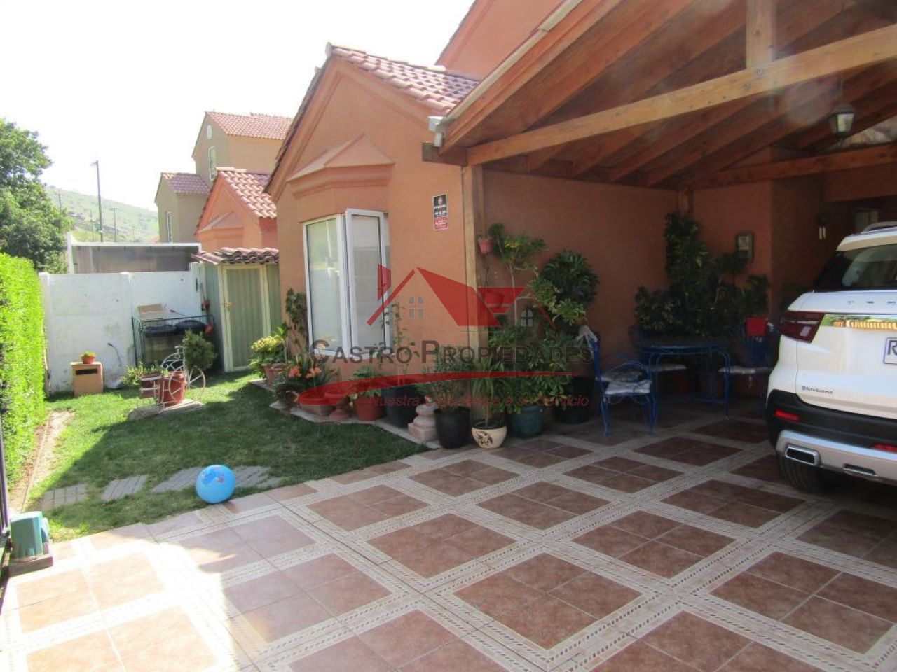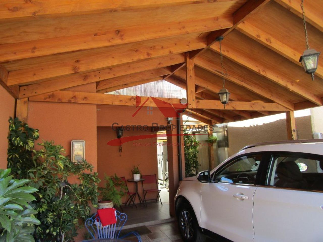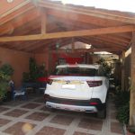 – Estacionamiento para Dos Vehiculos con Cobertizo de Madera con Vigas a la Vista